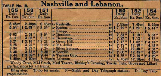 at 6:45 am, 12:30 pm and 4:15 pm, while trains left Nashville at