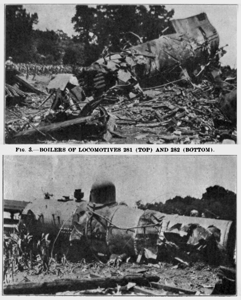 The engineman and firemen of both trains were killed. Locomotive