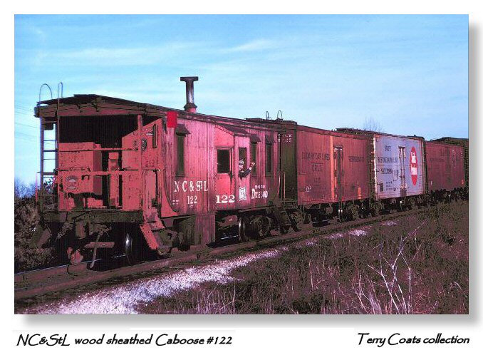 NC&StL wood-sheathed caboose #122, class NE-7. Built