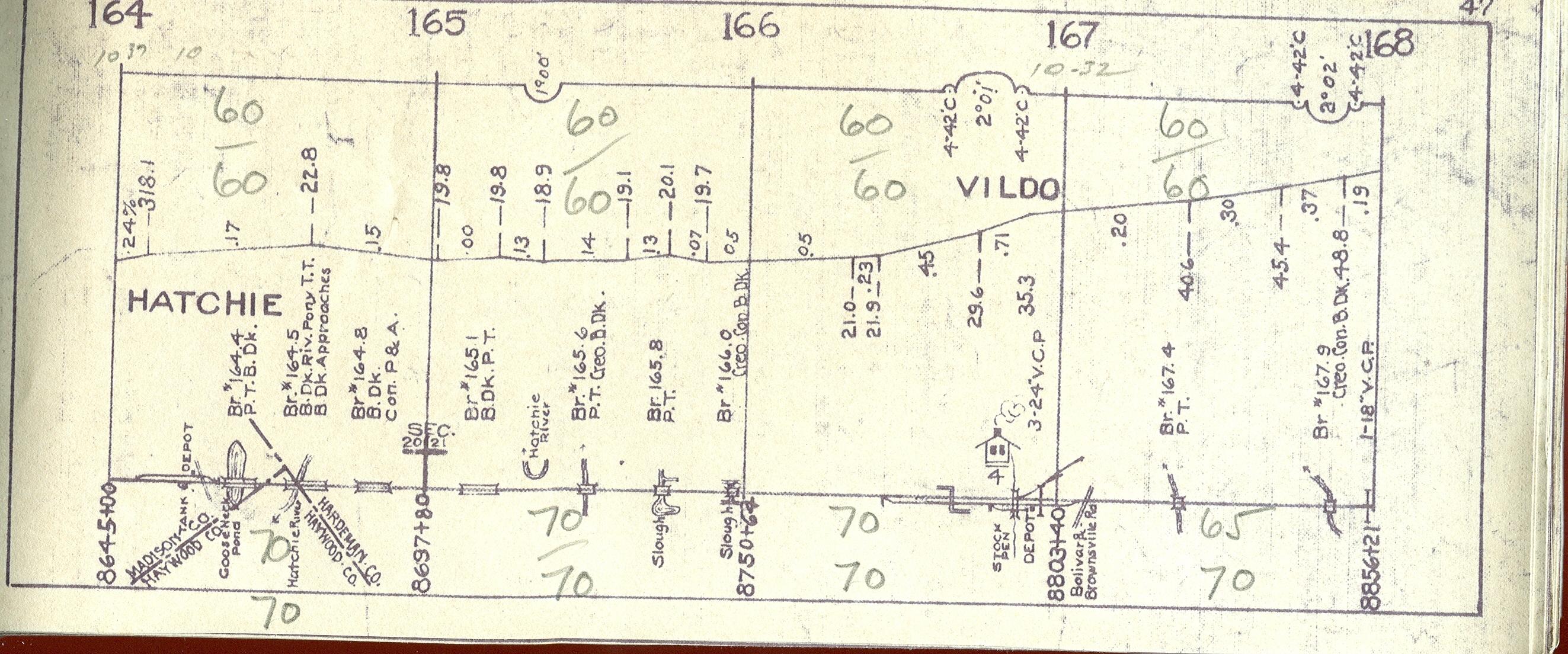 See aerial photo of the Hatchie Station showing NC&StL's longest trestles and only iron truss railroad bridge in south half of Paducah and Memphis Division.
