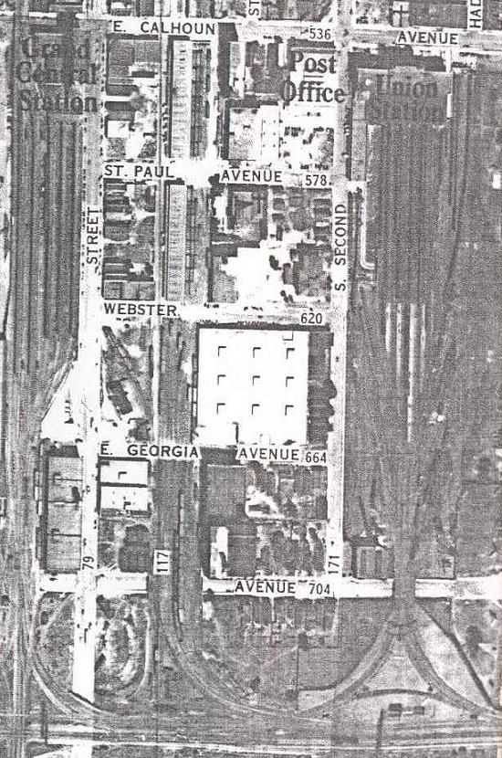 Urban area aerial photo of the former Memphis Union Station & NC&STL