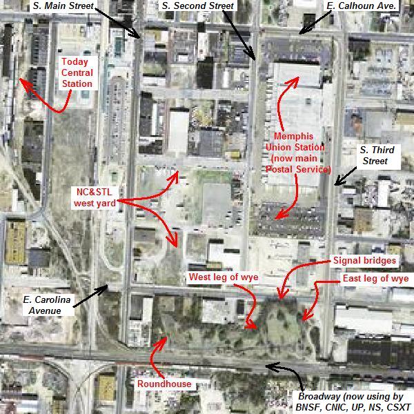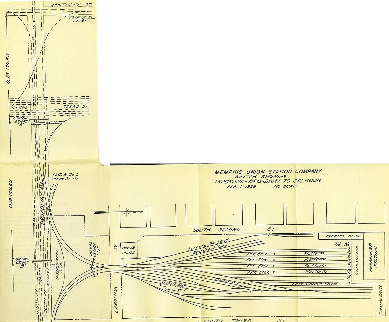Trackage Map of formerly Memphis Union Station & NC&STL West Yard is now available. I traced it from the old trackage maps in the 1940's on the urban area aerial photo is from the 2004 USGS flyover. It is greater than 11-inch long by 17-inch length paper prepared by myself which the .PDF byte size is over 2.5M. Send me email asking for a copy of the map.