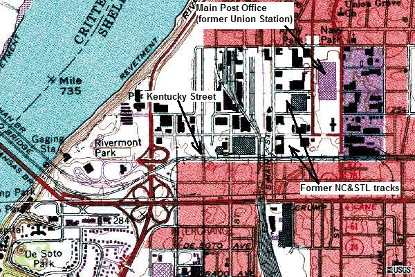 South part of NC&STL west yard and Memphis Union Station wye legs,