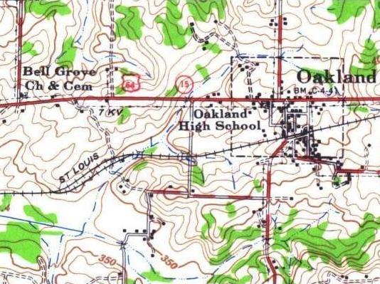 1943 USGS Collierville Quadrangle topo map of west of Oakland.