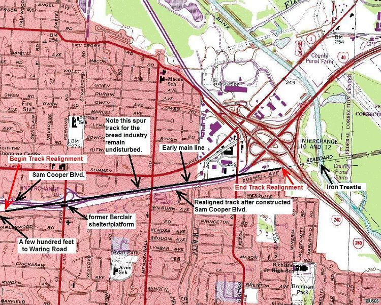 An early main line shows dashed 3 curves (see "OLD RAILROAD