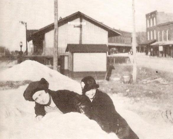 "This is the train station in Whiteville. You can see the bank building (left background) it burned in the 90's. The woman is
