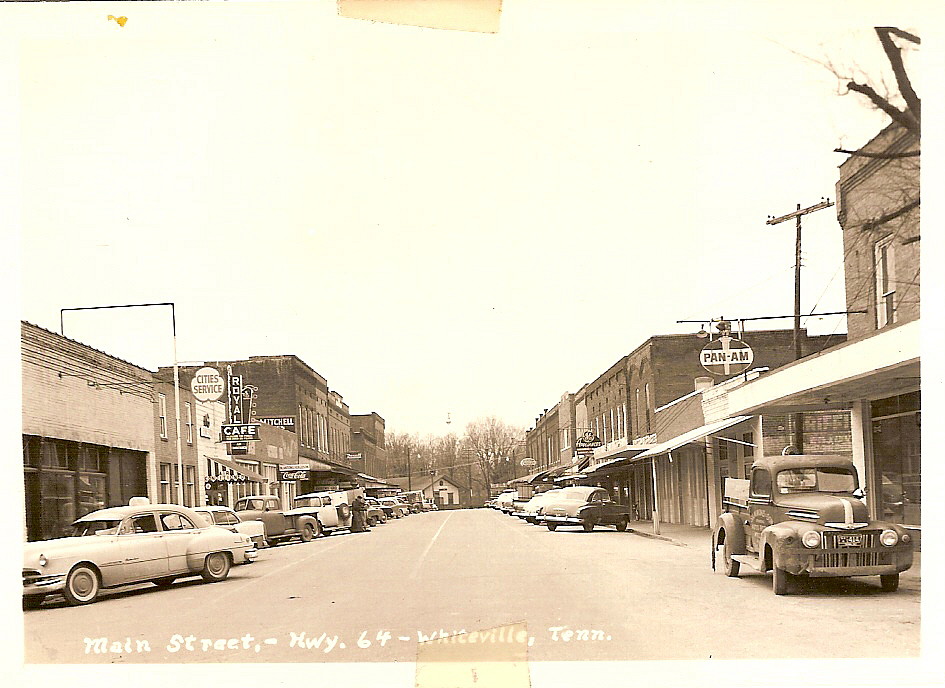 This is a scanned postal card from the unnamed publication at downtown Whiteville circa 1955.