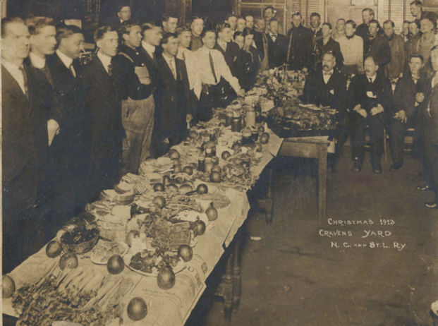Photo, Left to Right: J. L. Morris-switch engine foreman, Tom Mayers-engineer,